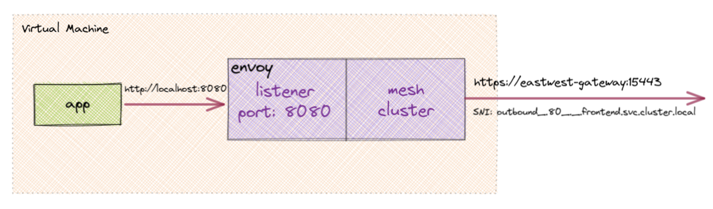 请务必注意您希望与之通信的网格应用程序的 SNI 值,因为 Envoy 配置中将需要它们。